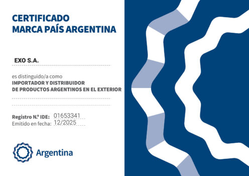 La Dirección Nacional de Marca País otorgó a EXO S.A. la licencia de Uso de Marca País Argentina, reconociendo su aporte a la difusión de la imagen del país y la promoción de la actividad vinculada a exportaciones en mercados internacionales.